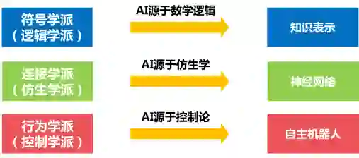 让机器实现人的智能,一直是人工智能领域的专家学者不断追求的目标。不同学科背景或应用领域的学者,从不同视角,用不同方法,沿着不同路径对人工智能进行了探索,产生了人工智能发展历史上的三大技术流派,即符号学派、连接学派和行为学派。