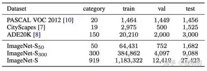 针对大规模无监督语义分割,程明明团队提出了一个用于LUSS 任务的大规模像素级语义分割数据集 ImageNet-S。在移除了部分不可分割的类别后,ImageNet-S含有 ImageNet中的919 个类别和约120 万张训练图片。 >>加入极市CV技术交流群,走在计算机视觉的最前沿