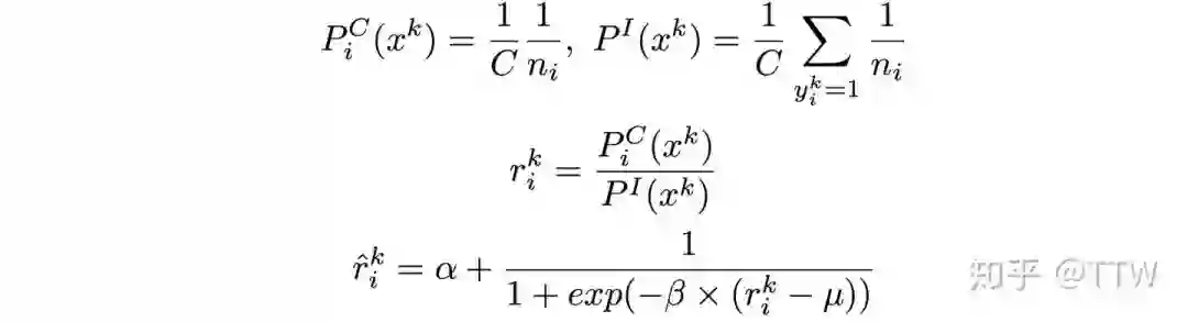 并以其作为加权系数加入训练,来弥补期待与实际采样概率之间的差距。特别的,我们还设计了一个平滑函数,将权重系数映射到一个合理范围内。权重系数的计算过程如下所示。