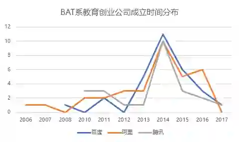 通过研究 BAT 系教育公司的成立时间、细分行业以及所在地,我们发现——