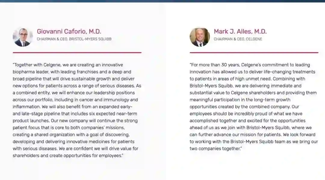 百时美施贵宝董事长兼首席执行官Giovanni Caforio表示,“我们与新基一起,正在打造一个创新的生物制药领军企业,拥有领先的特许经营权和广泛的研发管线,将推动可持续增长,并为各种严重疾病的患者提供新的选择。”