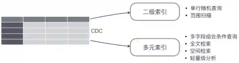 一个完整的数据系统架构下,需要有多个存储组件并存。并且根据对查询和分析能力的不同要求,需要在数据派生体系下对辅存储进行动态扩展。所以对于结构化大数据存储来说,也需要有能扩展辅存储的派生能力,来扩展数据处理能力。而判断一个存储组件是否具备更好的数据派生能力,就看是否具备成熟的CDC技术。