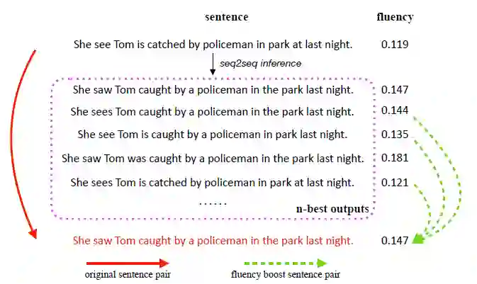 语法检查的模型根据输入的句子,生成多个不同的表达,从中找到最正确的句子,检测出原始输入中的语法错误,最后将正确的句子和具体的错误一起返回