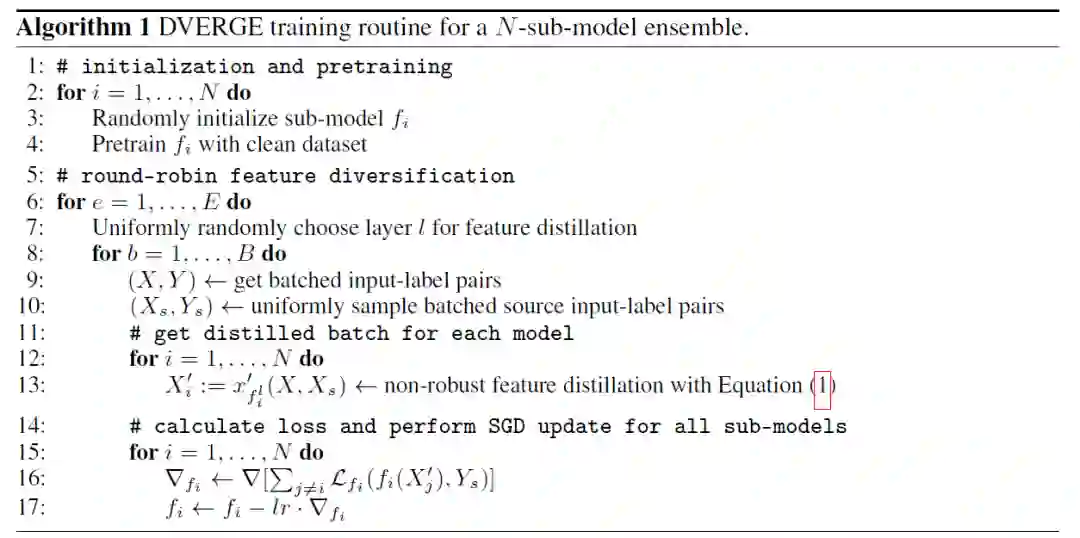 ,通过提取集合模型的子模型学到的“非鲁棒特征”确定其缺陷所在,并进一步通过多样化子模型的缺陷使其面对对抗性噪声输出不同的结果。