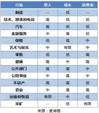 区块链对不同行业的影响如下表所示: