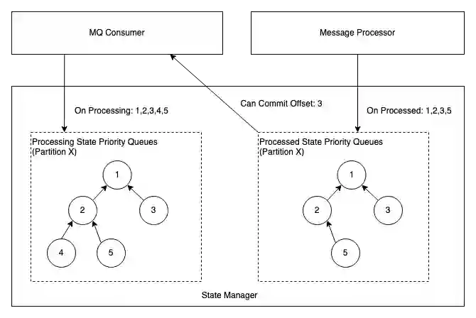 在 State Manager 中,会为每个 Partition 维护一个优先队列(最小堆),队列中的信息是 Offset,两个优先队列的职责如下: