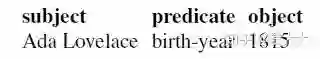 这个三元组可以用来回答文本问题,比如‘When was Ada Lovelace born?’ or ‘Who was born in 1815?'。在这个范例中,回答问题需要从文本字符串映射,比如”When was ... born”在知识基础上的规范关系,如出生年份。我们可以把这个任务概括为: