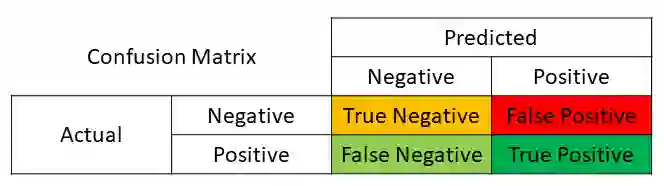 这四个部分还可以使用混淆矩阵表示,如下所示: