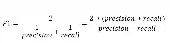 f1 score是召回率和精确度的调和平均值,得分越高越好。f1 score的计算公式如下: