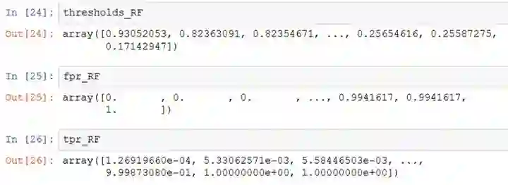 roc_curve函数返回三个列表: