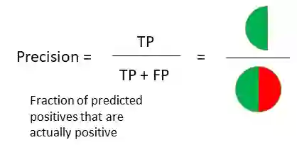 Precision(精确度)是实际为正的事件所占总的预测阳性事件的比,如下所示:
