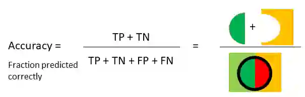 最常用的分类度量指标就是准确性,即正确预测的样本的分数,如下图所示: