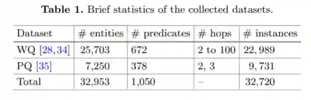 对于每个实例,WebQuestionsSP,ComplexWebQuestions都包含自然语言问题,SPARQ query及答案实体和一些辅助信息