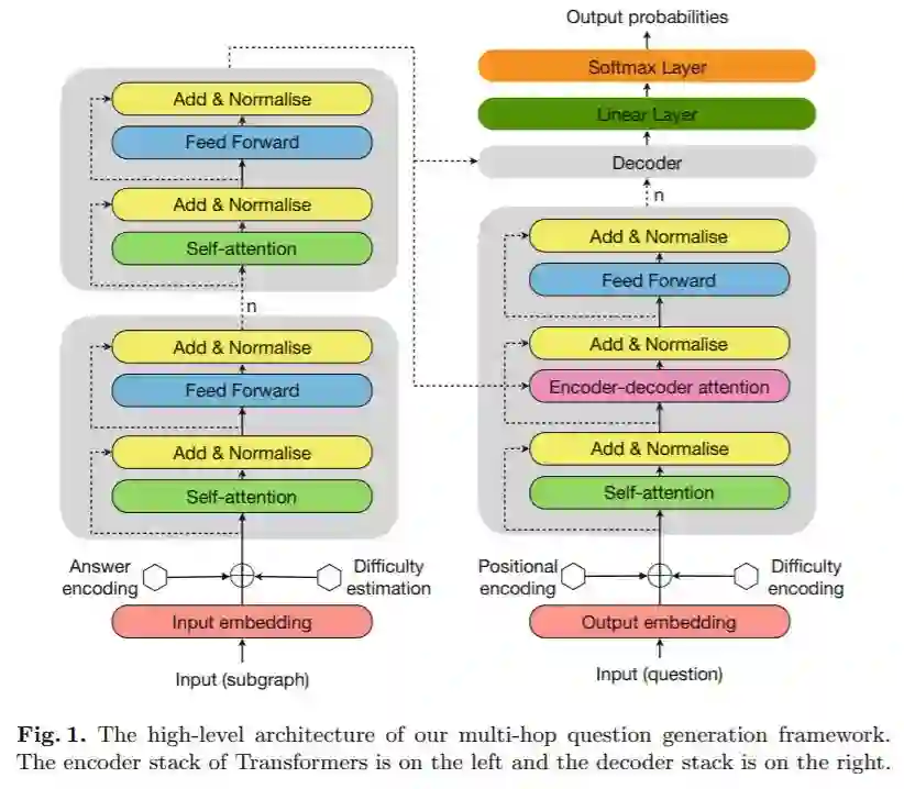 本文提出一个end2end神经网络模型以知识图谱为数据源,自动生成复杂的多跳问题,且问题难度是可控的。该模型以一个子图(来自知识图谱)及预设的问题答案为输入,利用基于transformer的模型生成自然语言问题。问题难度的控制因子基于命名实体的popularity指标构建得到。实验方面,利用现有的两个2-hops问答数据集,构建训练/测试数据得到的实验结果验证了该模型可以生成高质量,流利,且与输入子图密切相关的自然语言问题。