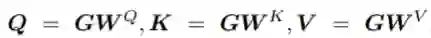 令Q,K,V分别表示编码器中的query,key和value矩阵,给定输入G,使用query矩阵对相关的三元组做软筛选(soft select)并积累Attention,公式如下: