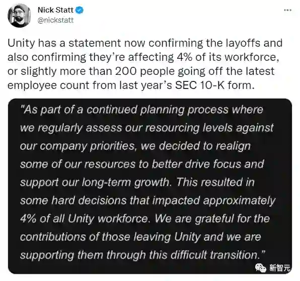 而在六月30日上午,Unity又发公告证实了裁员的消息,裁员比例约为总员工的4%。