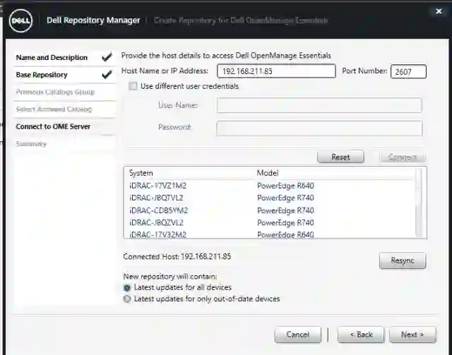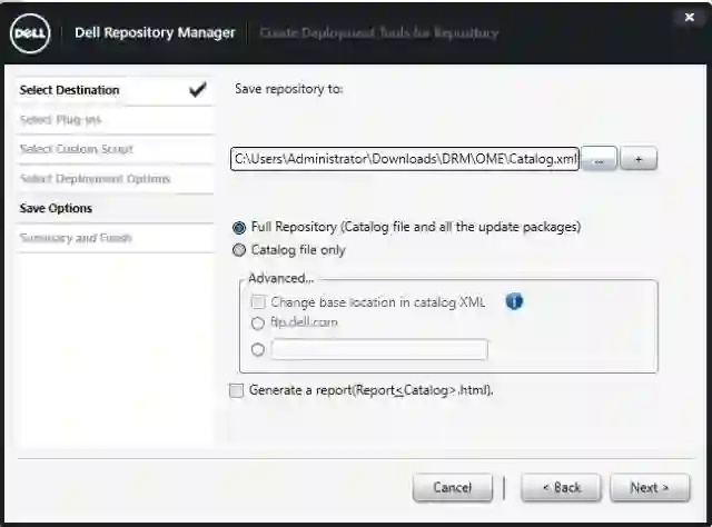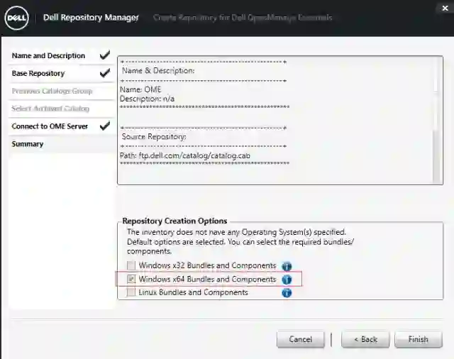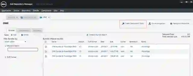 创建了一个属于OME的repository,例子中有包换R640/R740/R940的三种机型。勾选所有的bundles,点击Create Deployment Tools,用来本地目录源: