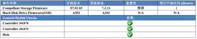 ① 存储主要对存储空间/读写延迟/IOPS/每秒传输率/控制器状态/硬盘状态/后端连线状态做出了说明,并且提醒了固件升级所需时间和准备工作:
