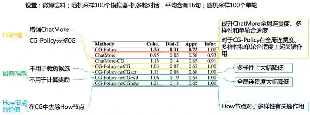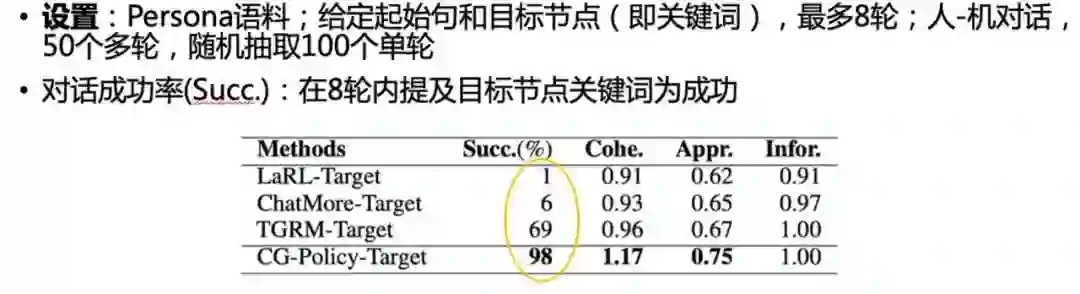 此外,CG-Policy可控性也很好(如要求聊到特定的对话目标节点上),但需要设计相应的奖励函数。具体而言,我们增加了下面的奖励函数: