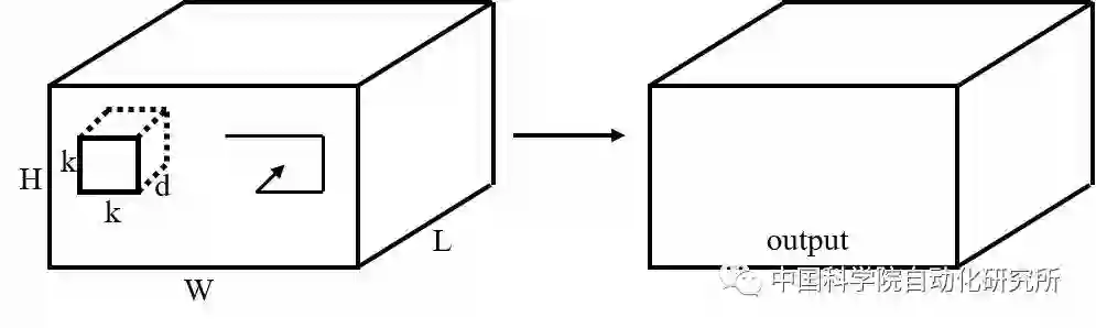 深度卷积神经网络(CNN)广泛地应用于图像识别中。其中,2D CNN只能够处理图片的空间信息,针对于视频信息时,2D CNN会损失时序信息;而3D CNN能对视频中连续帧进行时序编码,将空间信息和时序信息融合起来。2D CNN与3D CNN的区别如下图1所示:2D CNN将核大小为k*k 作用与H*W的图片上,3D CNN将核大小为d*k*k作用与L*H*W的视频上。(三个维度分别代表时序、长度和宽度,前一个维度代表时序维度,后两个维度代表空间维度)