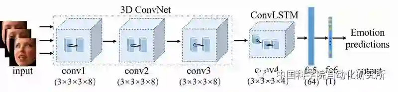 自动化所智能交互课题组基于3D卷积神经网络,推出端到端的连续情感识别系统,将特征提取和情感识别融合到统一框架中进行处理,同时编码空间信息与时序信息,利用ConvLSTM对情感的长时信息进行建模。该方法优化了操作步骤,并取得了更优良的效果。