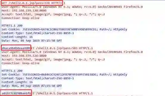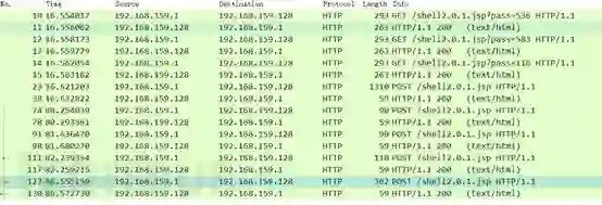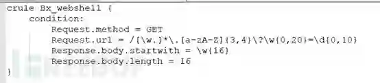 通过比较发现,冰蝎在连接之前会发送一个GET请求,服务端如果正常会响应一个16位的字符串。其实冰蝎每一次连接请求都会向服务端发送一次GET请求获取16位的密钥,这16位的字符串就是密钥,在客户端和服务端的通信过程中使用密钥进行加密以达到免杀的目的,因此只要我们能在流量中发现这样特征的流量,便可以发现隐藏在流量中的冰蝎webshell。
