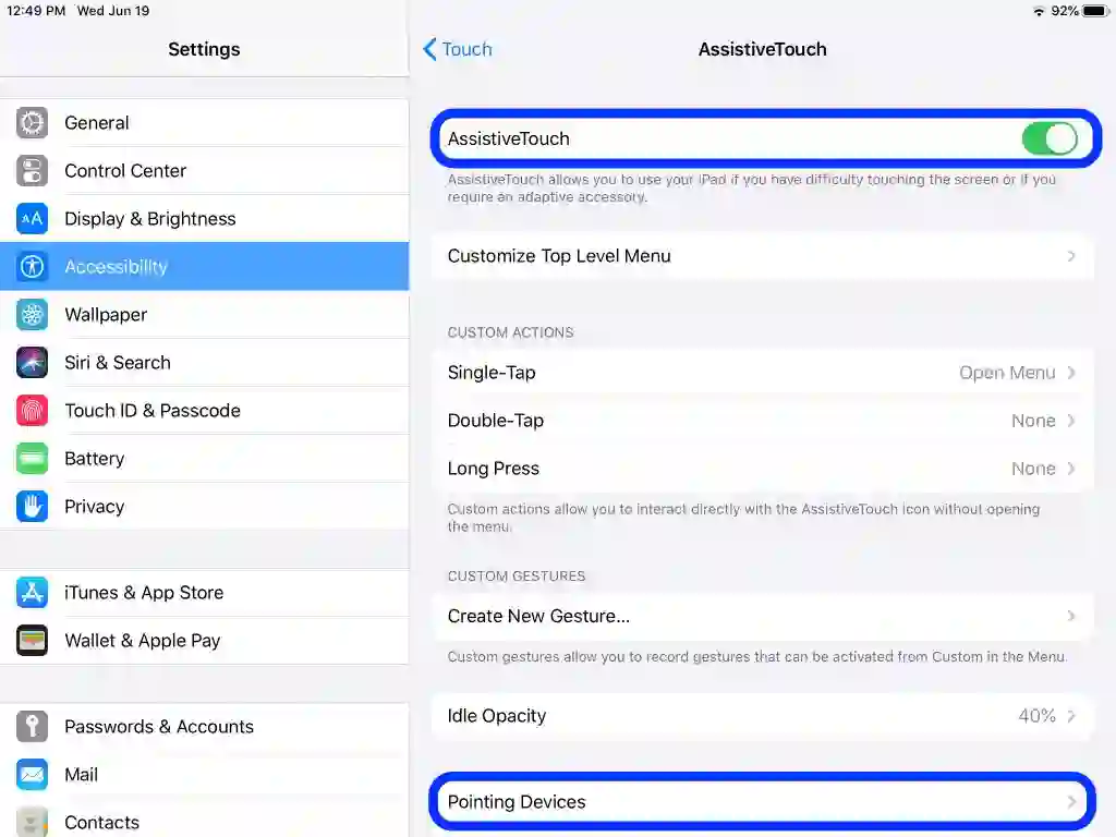 开启辅助触控并配对鼠标后,iPad 上就会出现类似「小白点」的圆形鼠标指针;