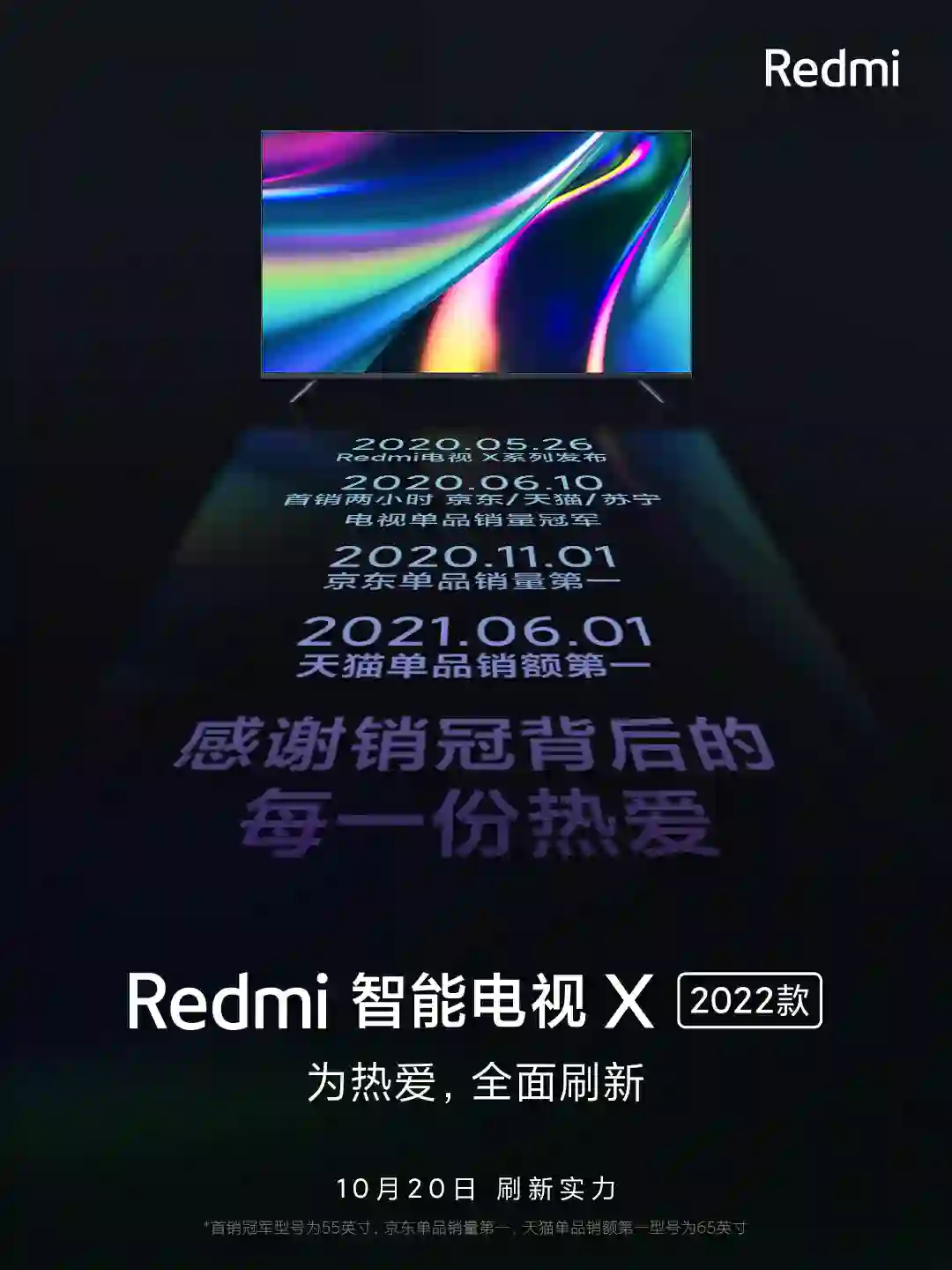 目前官方未公布该产品更多配置信息,照以往的销量结合此次升级的亮点来看,Redmi 智能电视 X 2022款将延续好口碑,销量值得期待。