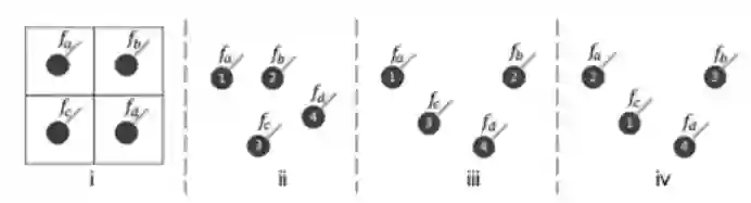 做3D视觉的,尤其是基于点云做3D视觉任务的同学们都比较清楚的知道,点云因为其具有稀疏性和无规则性使得在二维上非常成熟的CNN结构不能直接的运用在点云中。我们先了解一下点云的这两个特性,如下图所示,下图中的(i)表示二维图像的排列方式,(ii),(ii),(iv)表示的是点云的数据,可以看出点云的排列稀疏性,对比(ii)和(iii)可以得知虽然点云数据的排列顺序假使是一样的,但是其对应的几何结构不同,而(iii)和(iv)则可以看出尽管几何结构表示同一个,但是排列顺序却是可以不一样的。
