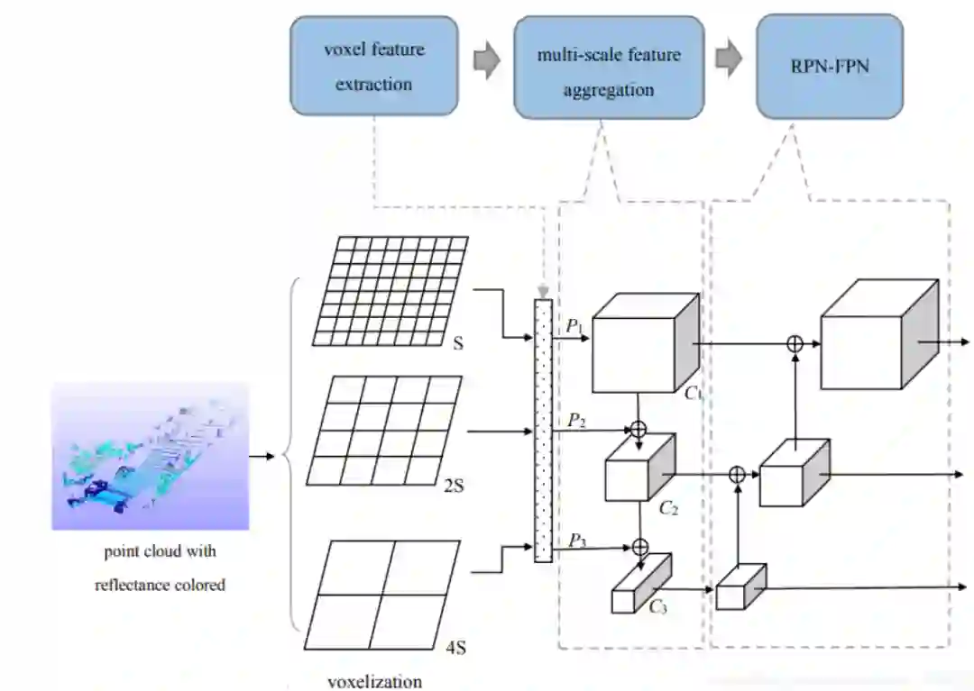 文章Voxel-FPN:multi-scale voxel feature aggregation in 3D object detection frompoint clouds,该研究工作的主要内容是通过不同scale的体素划分,最后将其整合成到RPN网络结构中的FPN网络中,需要注意的是,这里的scale的大小要和最初划分的scale对应起来。