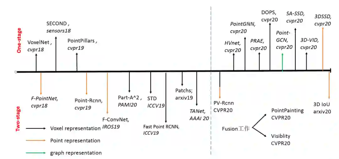 既然我们知道point-based的方法具有保持了几何structure的能力,同时voxel-based的方法具有高效的感知能力,那么最新的研究就在考虑如何做这方面的fusion工作,PV-RCNN(CVPR20)采用的将voxel特征经过multi-scale的形式赋予到point上,最后再refine阶段将点的局部信息融合到pointnet中。SA-SSD采用voxel2point添加附加任务使得voxelbackbone具有structure aware能力。实际上根据representation fusion的经验,应该还是大有可做的。