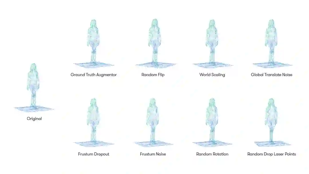 实际上3D目标检测的数据增广方式和二维目标检测的方式大多相同,我们总结为如下一些比较常见的数据增广方式,根据动态图很容易的看到的出来数据增广的方式,这里笔者着重介绍一下groundtruth augmentor的方法,这应该是根据3D点云的稀疏空间特性所特有的数据增广方式。