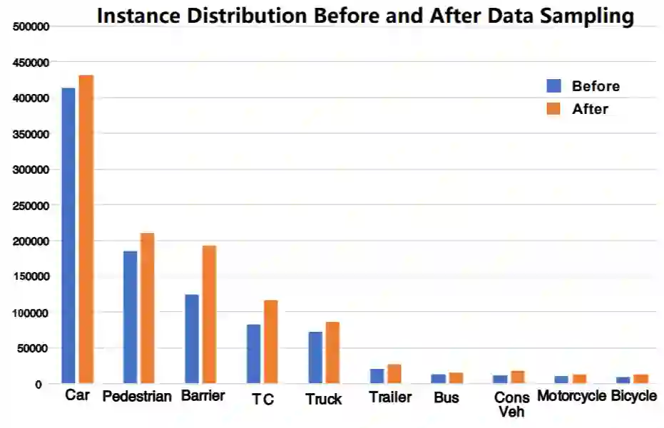 这里作者采用的gt数据增广方式采样如下个数的gt来平衡数据集本身存在的long tail问题,并最终在nuscence上取得了榜一的成绩。