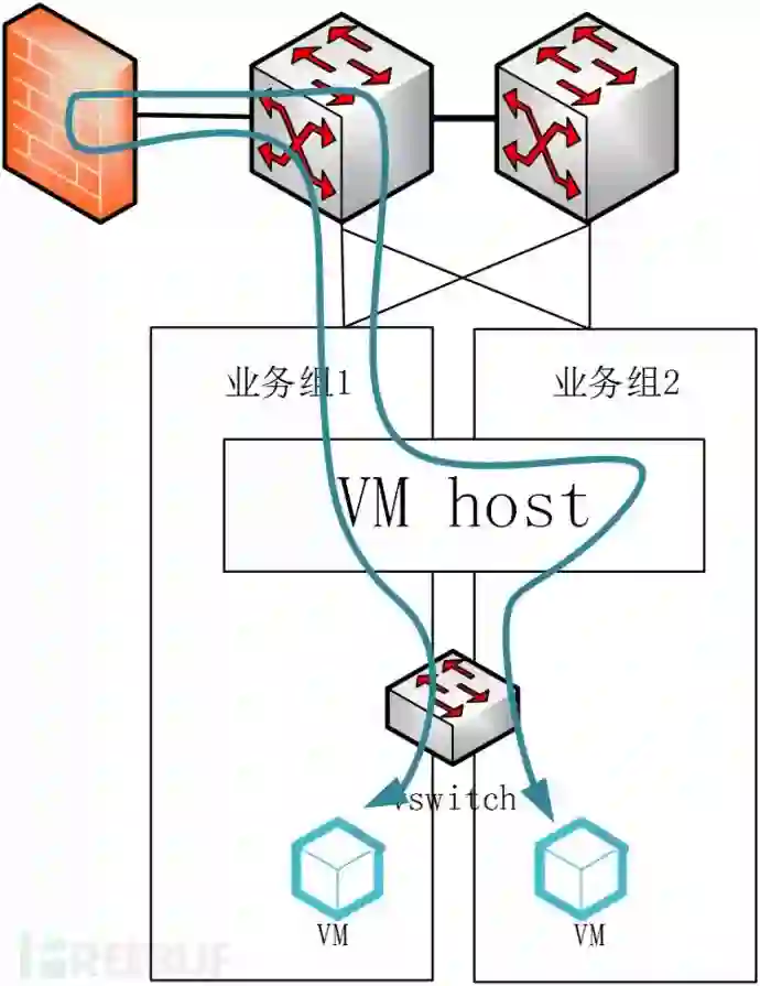 虚拟化数据中心根据底层架构的不同,基于VLAN/VPC的内部隔离是两种比较常见的方式。很多企业先根据部门、业务系统将数据中心逻辑上划分成不同安全域,并通过VLAN/VPC的方式进行隔离,再将虚拟机部署在各VLAN/VPC中。由于VLAN/VPC均为二层隔离,如果各组之间需要通信,则需要通过三层设备(三层交换、防火墙)进行。两种方式主要都是延续了传统数据中心安全管理的思维,分堆、分隔、访问控制。
