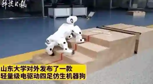 近日,山东大学机器人研究中心对外发布了一款高性能四足仿生机器狗,这是全球首款轻量级电驱动仿生机器狗,体型小巧,但搭载了众多黑科技,能力出众,奔跑、跳跃、上下楼梯都不在话下。