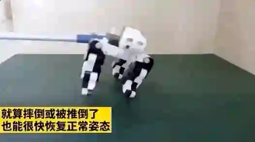 这种小型四足仿生机器人主要模拟动物的行为,包括静步态、Tro 步态,Pace 步态,Bound 步态,可以跑得很快,也可以打滚翻起来。
