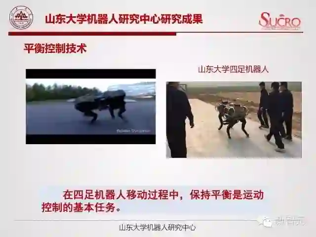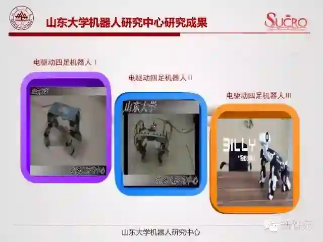 山东大学机器人研究中心成立于 2003 年,主要致力于机器人技术和智能装备等方向的研究工作。山东大学在电驱动四足仿生机器人方面做了不少探索: