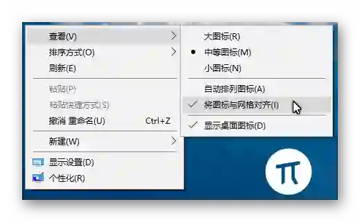 在桌面上点击 鼠标右键 > 查看 > 打开「将图标与网格对齐」。