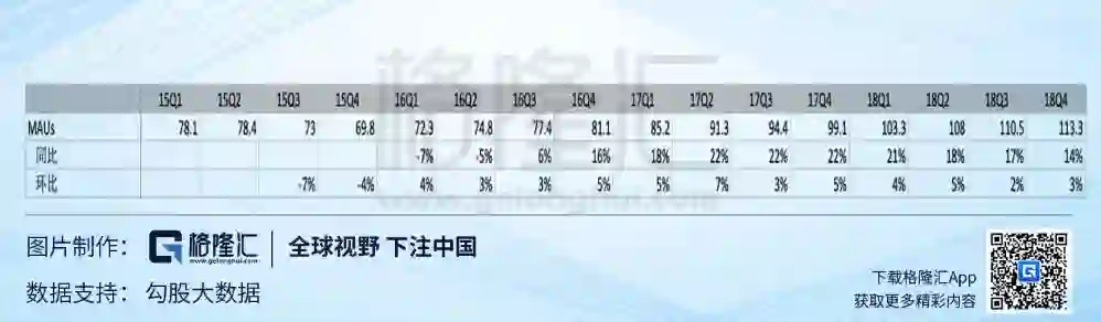 直播的收入增速虽然有所放缓,在Q4同比增速为31%,结束了“野蛮”的增长期,这也跟直播逐渐增大的规模有关。但是陌陌app的MAUs和ARPPU都保持这很不错的增长趋势,可以看出直播的业务仍然处于非常稳定和健康的状态。