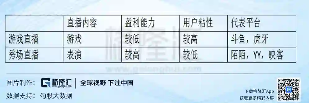 直播的收入主要来源于打赏,看异性表演一般会比看游戏主播更愿意打赏,所以秀场直播的ARPPU(单个付费用户消费)一般都会比游戏直播的高。这是为什么一些游戏直播平台都一直在亏钱,秀场直播平台早就开始盈利的原因之一。