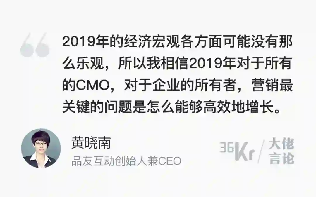 今年的广告营销行业,正面临着不确定性激增的窘境。穿过这片令人迷茫的“无人区”,谁也不知道前景是光明还是晦暗——于企业个体,或于行业整体,皆是如此。与往年一样,36氪通过与时趣互动、品友互动、AdMaster、madhouse等数字营销公司高层的深度访谈,照例总结了广告营销行业在2019年的发展趋势。从这些趋势中,能感受到整个行业在过去一年经历的欣喜与恐惧。
