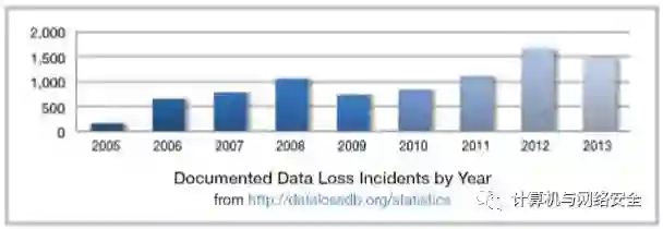 下图中,文档化数据丢失事件的逐渐增长为当前正在成功增加的攻击提供了证据。