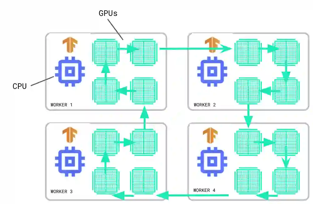 在版本 2.4 中,实验性引入了 tf.distribute 模块的支持,可通过 ParameterServerStrategy 和自定义训练循环对 Keras 模型进行异步训练。与 MultiWorkerMirroredStrategy 一样,ParameterServerStrategy 是一种多工作器数据并行策略;但其梯度更新方式为异步执行。