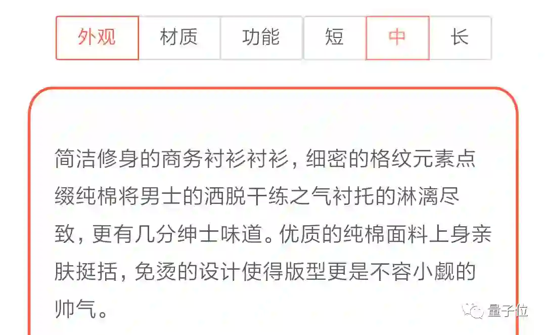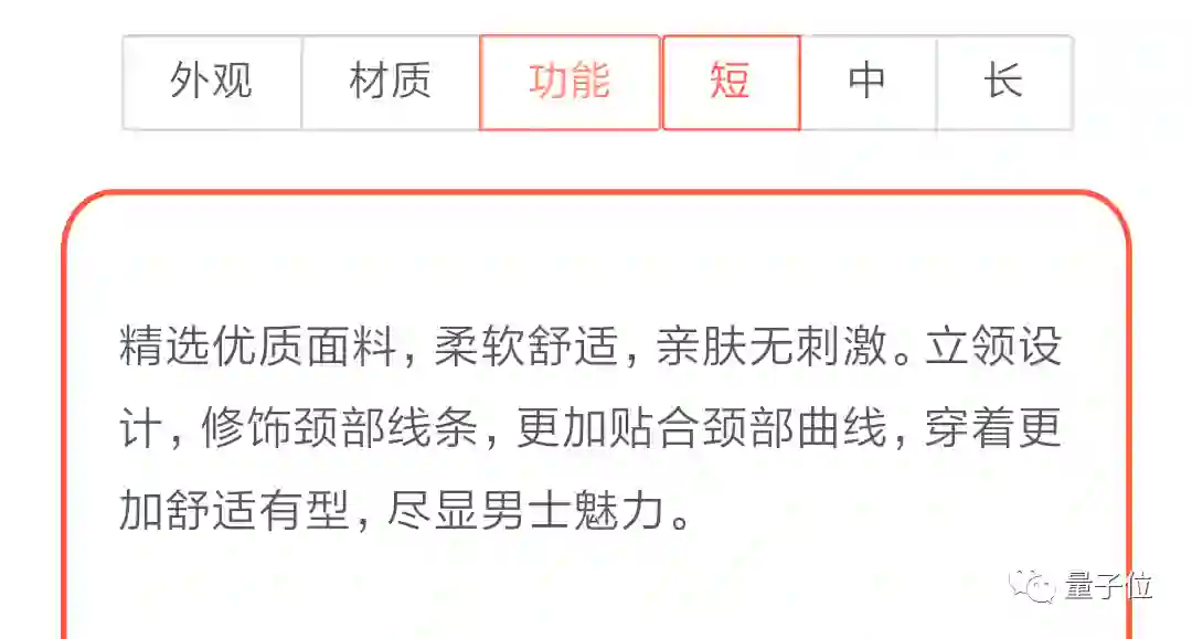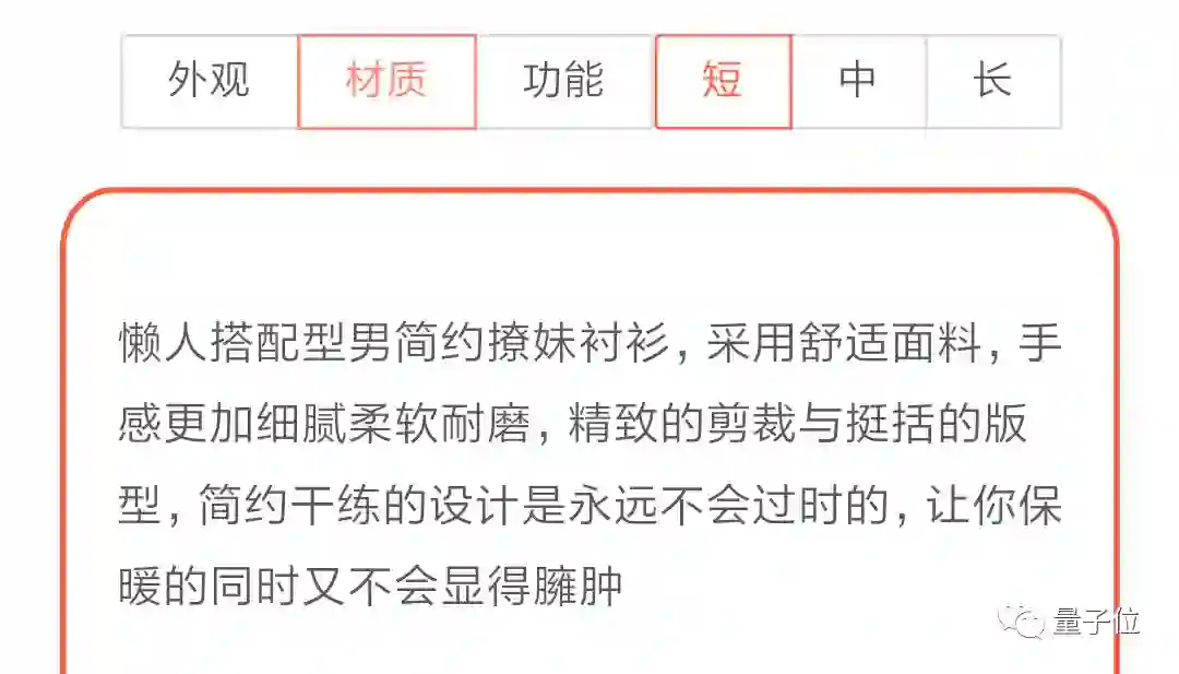 就可以生成一段商品介绍文案,还能选择文案的长度、商品强调的卖点,生成各种不同的文案: