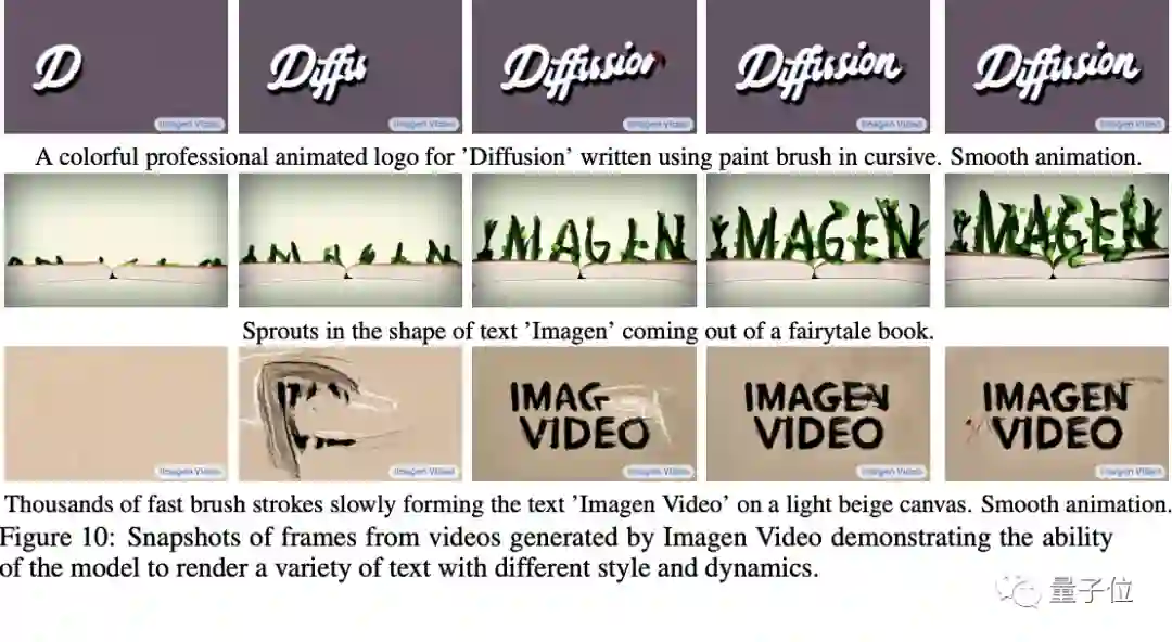 最后它还继承了Imagen准确描绘文字的能力,在此基础上仅靠简单描述产生各种创意动画,