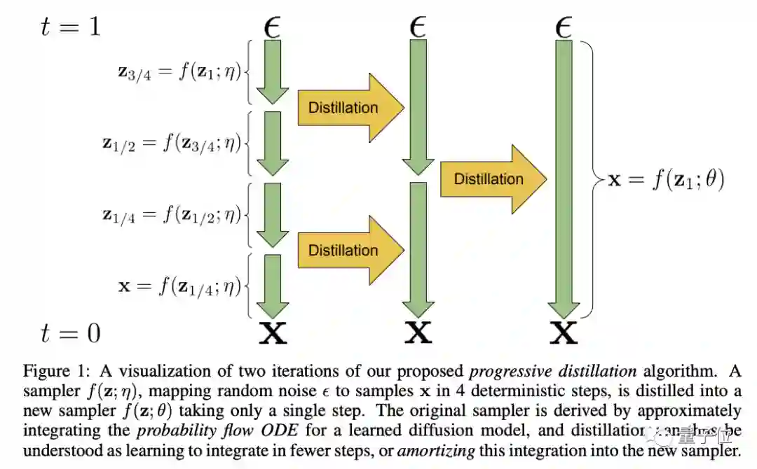 此外还有渐进式蒸馏(Progressive Distillation),将每次迭代所需的采样步骤减半,大大节省显存消耗。
