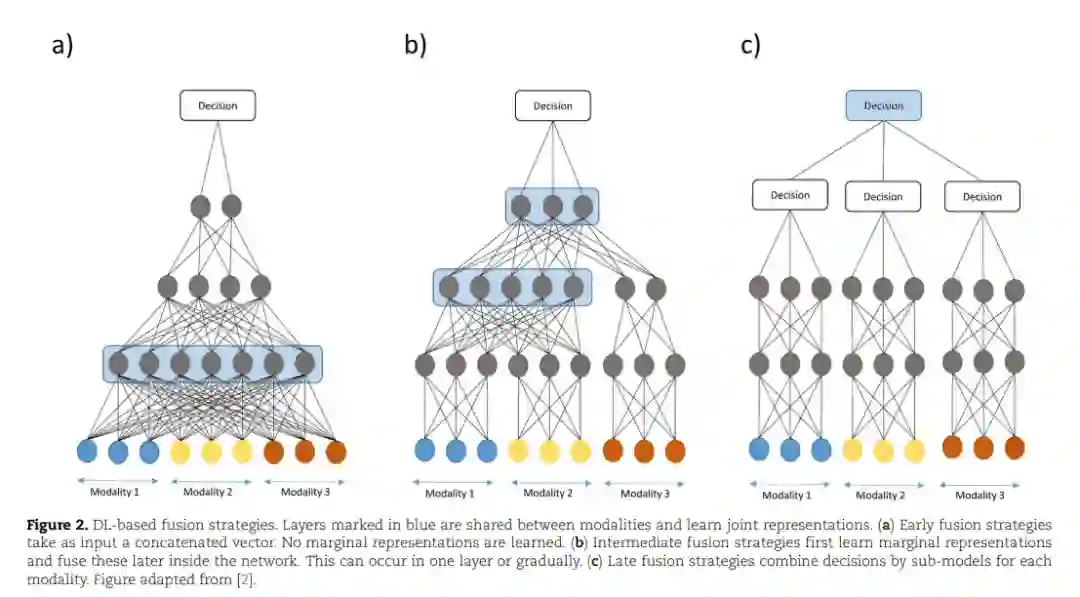 融合策略的目的是有效地利用不同模态的互补、冗余和合作特征。为了充分利用这些对感兴趣的现象的观点,机器学习(ML)方法必须部署,能够融合具有不同统计特性的结构化和非结构化数据、非生物变异来源、高维[6]和不同模态的缺失值[2]。