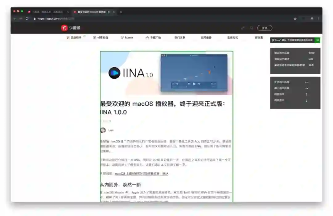 MaoXian Web Clipper 的操作方式与印象笔记剪藏类似,只需要点击图标,选中想要保存的区域,就可以将网页下载至本地。你还可以自定义子目录及标签等,并在扩展页面搜索曾经剪藏过的网页。
