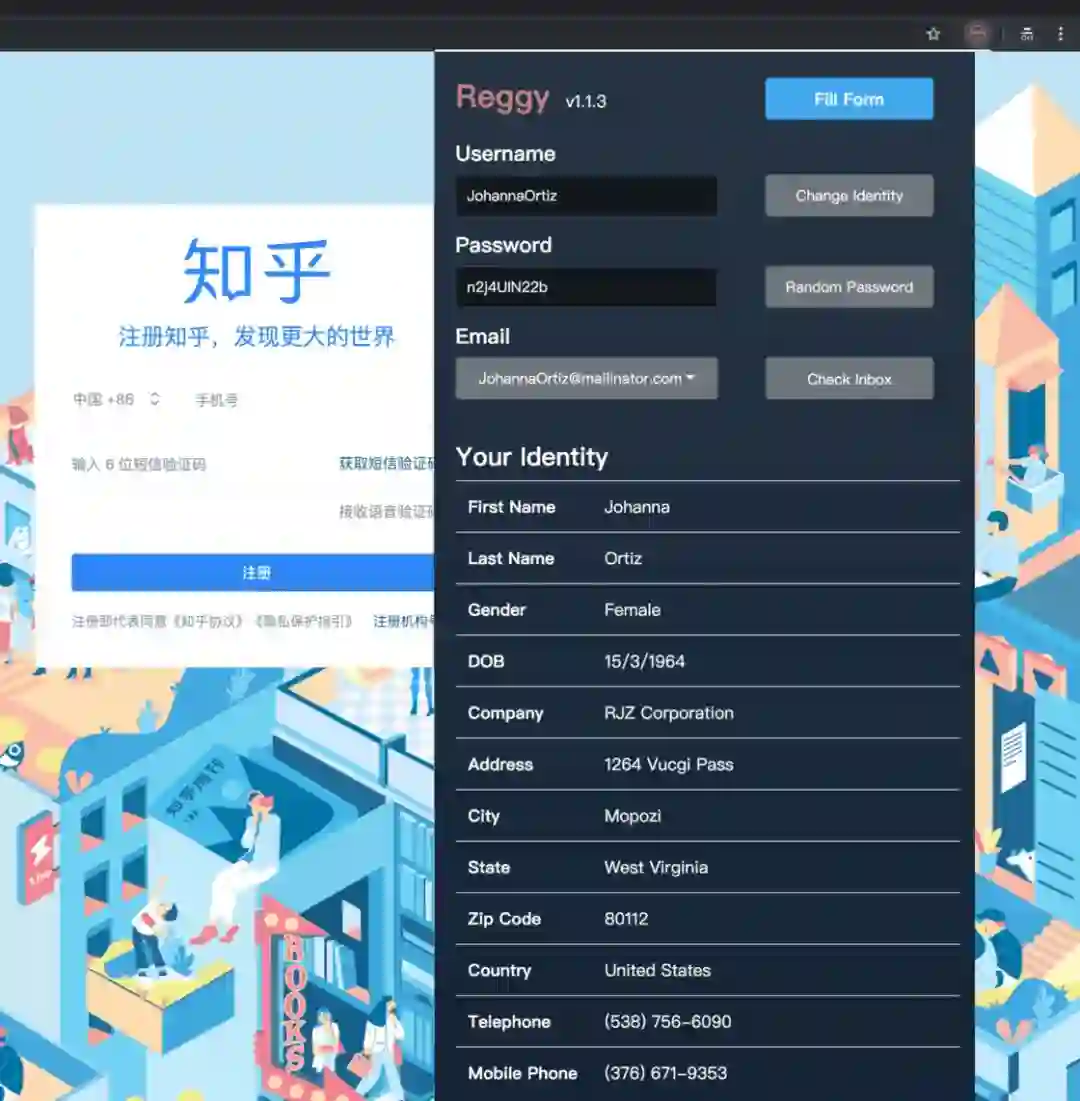 Reggy 内置了 Mailinator、MailDrop 等数个临时邮箱服务,并可以随机生成用户名、密码、手机号、住址等个人信息,还支持一键填充。接收验证码后,你就可以把邮箱抛在一边,再也不用跟垃圾邮件做斗争了。