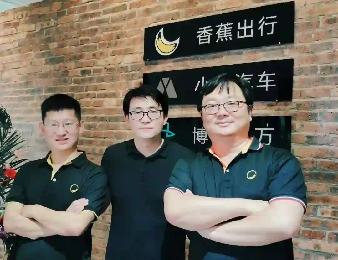 图|香蕉出行三位合伙人:CTO 于亮(左)、合伙人钟雨飞(中)、CEO 于世璿(右)。(图片来源:DeepTech)